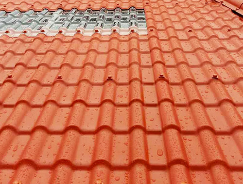 星发树脂瓦经过实验测试,长期暴露紫外光线,湿气,寒热等恶劣条件下,仍然能保持其颜色的稳定性,经久不褪